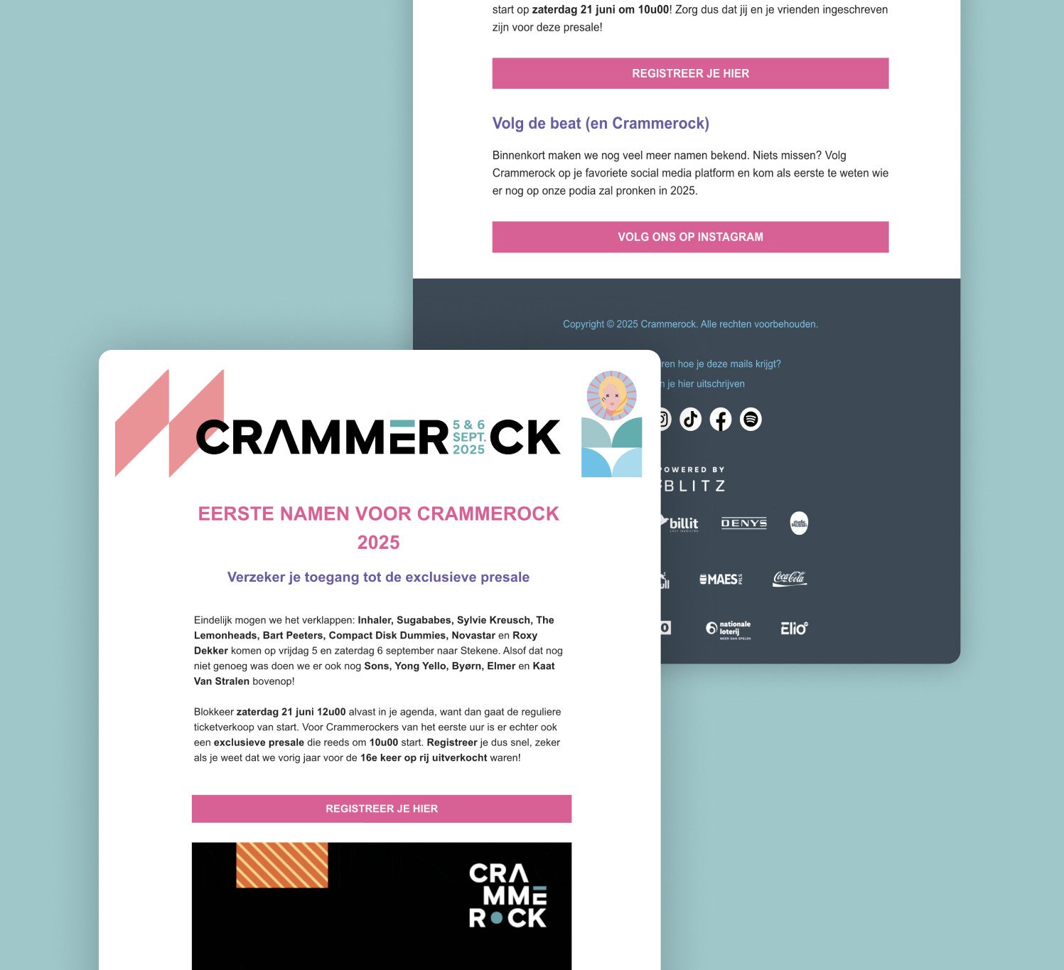 Wil je jouw merk koppelen aan een van de meest geliefde festivals van België? Crammerock biedt je de kans om duizenden enthousiaste festivalgangers te bereiken op het perfecte moment: wanneer ze ontspannen, openstaan voor nieuwe indrukken én volop genieten.